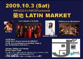「Amigosa a la moda presents 築地LATIN MARKET」 2009年10月3日(土) 18:30 Open 19:00 Salsa Dance Lesson by HIROKO 19:45 Live by Amigos a la moda (2stages) DJ Mac Performance: Minimucha 場所:築地Cuban Cafe (http://www.geocities.jp/cubancafe2005/) チャージ:2500円w1d