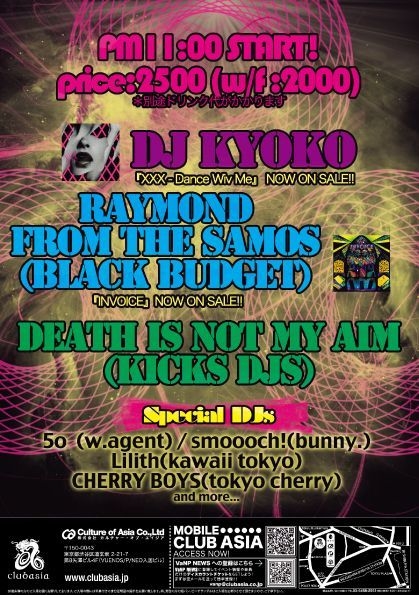 東京エレクトロシーンを牽引する若手DJ、bunny.のsmoooch!/kawaii tokyoのLilith/tokyo cherryのalex.wasshi-等を一挙に集結し、渋谷club asiaで開催決定。さらに今回はGUEST DJとしてDJ KYOKO/RAYMOND from the samos/death is not my aimを招き、渋谷の街をロックする。