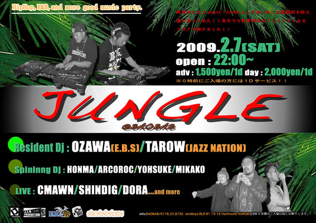 レジデントDJとして、もはや説明不要、八戸は基より、県内外で数々のレギュラー、PARTYで活躍中の DJ OZAWA(EBS) DJ TAROW(JAZZ NATION) を迎え、そして脇を固めるDJ陣も最狂のPARTY MAKER達を起用! LIVEでは、八戸で活躍中の実力派MC,SINGERがフロアのテンションを最高潮に!