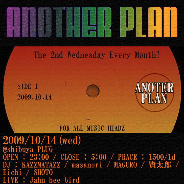 各地で活躍中のDJ、LIVEを集め、BLACK MUSICを基盤した全ての音楽好きのためのイベントを渋谷PLUGから毎月第二水曜日に発信! 下北沢WEDGEの看板イベントALL THE WAY LIVE!よりKAZZMATAZZ、masanori、family代名詞pleasureなどで活躍中のMAGURO、若手有力Digger賢太郎、family、GET FRESH!!!主催Nu:EssenceよりEichi、SHOTO、LIVEにはfrom福岡、jahm bee birdが参戦! 全ての音楽好き達へ!