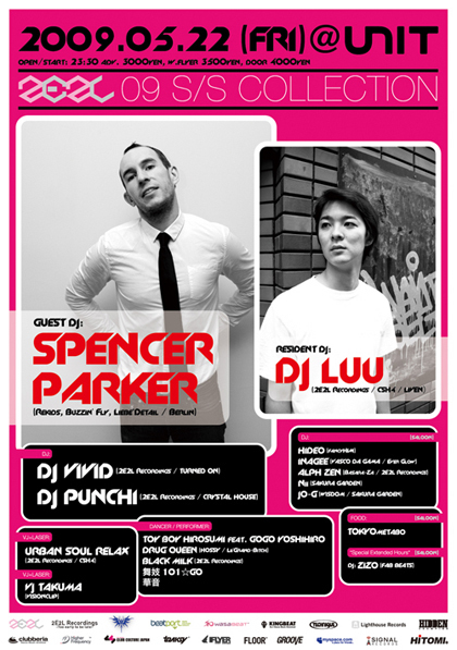 現在、国内はもとより世界でも注目を集めている新興ドメスティック・レーベル<2E2L Recordings>。そのレーベル名を冠したパーティー「2E2L」が遂に代官山UNITで開催される!!そして、EUクラブシーンでいま最も話題の”スペンサー・パーカー”の初来日出演も大決定!!「2E2L」は、-too early to be late-(早すぎず、遅すぎず)を意味し、ルーツミュージックをリスペクトしつつ最先端/次代のサウンドを追求、提供していくという哲学が込められている。昨年6月のローンチからわずか1年で約60タイトルをリリースし、うち7タイトルが世界最大のDLサイト<beatport>の上位にチャートイン。ハウス、テクノを軸に、ダンスミュージックの未来を創造するレーベル&パーティーの姿がここにある。