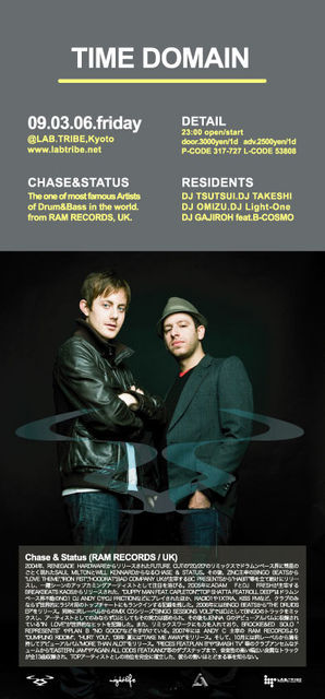 NEW PARTY,TIME DOMAINが始動開始!本場UKのリアルスタイルを提唱するBIG PARTY!!今回のゲストはUK、RAM RECORDSからの刺客、今最も勢いのあるアーティストで、UKのみならず世界中で絶大な支持を得て、DRUM&BASS、DUB STEPと飛び回り、最もブッキングを取ることが難しいとされるアーティストの一人、CHASE&STATUSが初来京、そしてTIME DOMAINに登場決定!