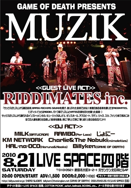 「サックスのリズムから創る音楽」BRASS ROCKERS SOUNDを掲げ、ありふれた音楽ではない 刺激のある音楽を創りだすRIDDIMATES。(リディメイツとはRIDDIM、パトワ語でリズムとMATES友達を合わせ創った造語- )