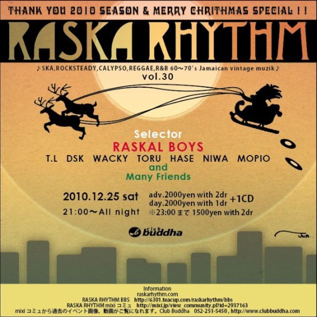 THANK YOU 2010 SEASON & MERRY CHRITHMAS SPECIAL!! ♪SKA, ROCKSTEADY, CALYPSO, REGGEA, R&B 60〜70's Jamaican vintage muzik♪ 2010.12.25(sat) 21:00〜All night at club buddha