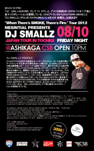 8/10 DJ SMALLZ JAPAN TOUR at Club South BBC in TOCHIGI