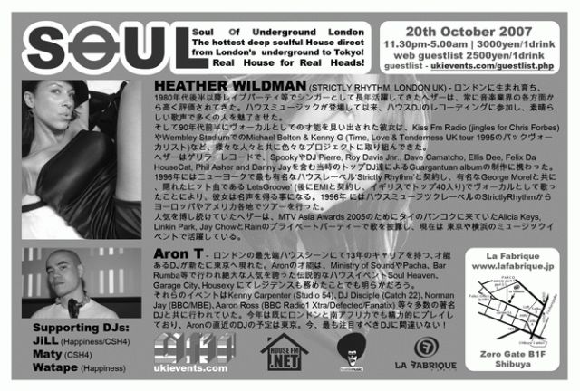 DJs:Aron-T(Soul Heaven,London UK/SOUL) / JiLL(CSH4/Happiness/SOUL)