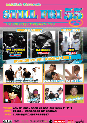 [岩国LIVE] ●ZAO & NASKY THE ROYAL CROWNのSIDE MCやソロとしてもその才能を徐々に開花させつつあるZAOと、WARKINN'STOREの店員としての顔ももつ『色男』NASKY。彼等が主催する『HYPNOTIC』も好調である。