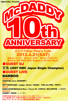 開催終了4/21(土) McDaddy 10周年スペシャル!!@吉祥寺Star Pine's Cafe