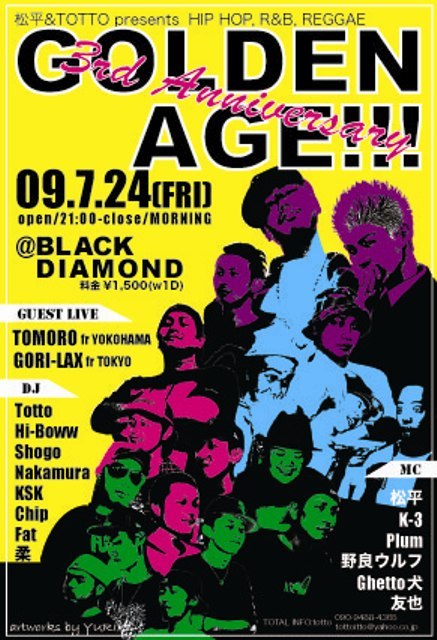 先月のBlack Diamond 4周年に続いて、7月の第4金曜日は、Golden Age!!!3rd aniversary!!!
