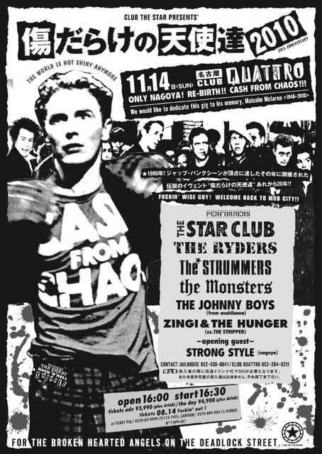 11月14日(日)名古屋:QUATTRO [opening act] STRONG STYLE [live] THE STAR CLUB/THE RYDERS/The STRUMMERS THE MONSTERS/THE JOHNNY BOYS/ZINGI&THE HUNGER [DJ] TSUTOM [open/start] 16:00/16:30 [tickets] adv ¥3990 day ¥4900(共に+drink) tickets 8.14 go sale PIA(P:115-149) LAWSON(L:45860) e+(http://eplus.jp) [contact] QUATTRO 052-264-8211 JAILHOUSE 052-936-6041