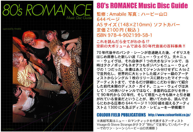 80's ROMANCE Music Disc Guide 監修 : Amabile 写真 : ハービー山口 from「LONDON Chasing the Dream」 644ページ A5サイズ(148×210mm) ソフトカバー 2100円 (税込) ISBN 978-4-902199-58-1