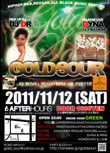 奇数月第2土曜日の鉄板PARTY!【GOLDSOUR】!!おかげ様で3年目を迎える事が出来ました! 感謝の意味を込めまして今回はチケット無しの1000円(別途1D)で開催! 料金は安くなりましたが、内容は変わらず最上級をお届け! 富山からDJ DRをPICK UP DJに迎え、さらにはリリースライブにはシングルをリリースしたばかりのDYNA a.k.a. BullBombが登場!恒例のプレゼントMIXCDにはDJ JUNPEI!!! 3年目もマチガイないPARTY【GOLDSOUR】!是非遊びに来てください!!DJ TENMA氏のNEW MIX CDもリリースされます!!