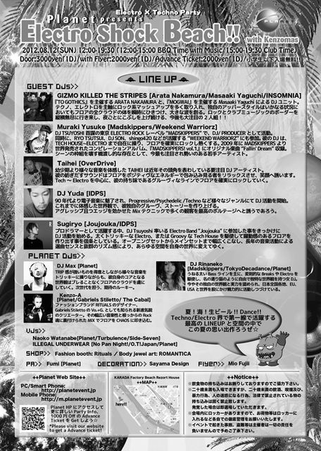 2012/08/12(SUN) [Sunday Beach Party & Kenzo Birthday Bash!!] Start 12:00-19:30 *12:00-15:00 BBQ Time (with music) *15:00-19:30 Club Time