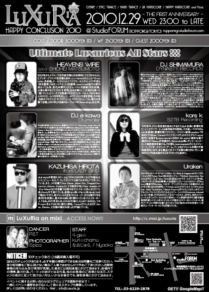 Clavia MAXXHEART vs. kasdf (LuXuRia / mi-ya-za-wa-) sachi☆ vs. Nao (LuXuRia) DJ Noriken vs. DJ 490 (LuXuRia / SKETCH UP! Rec.) cittan* vs. Tomohiko Togashi (LuXuRia / LC:AZE / Delights Music) P*Light vs. DJ Genki (pichnopop / SKETCH UP! Rec.) GHOST BUSTERS (Checkmate / android+) SAY-NO vs. YU-TA (KINGDOM) Abitan vs. Chippy Hardcore (Gadget)