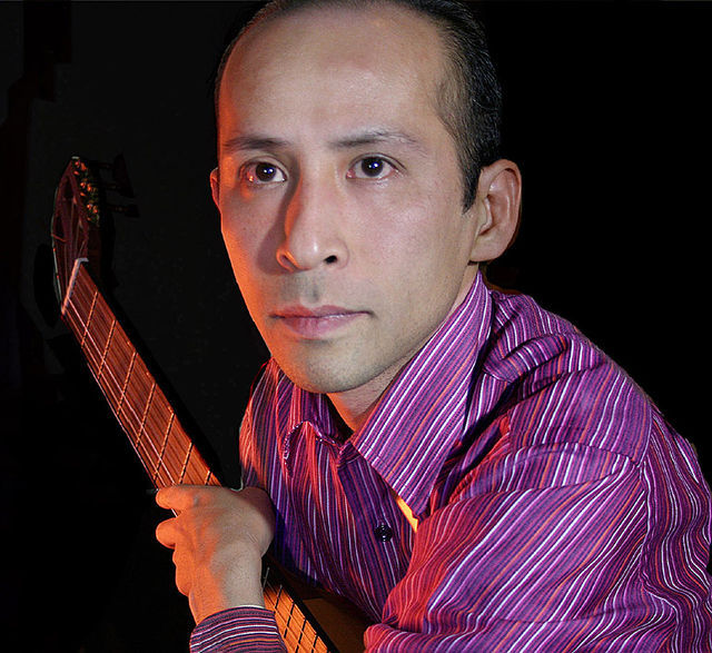 活動を続ける倉地久美夫。半分に切ったカポタストを複数ギターネックに挟み、