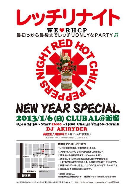 「レッチリナイト」が 新春1月6日(日)にロックの聖地 新宿にて