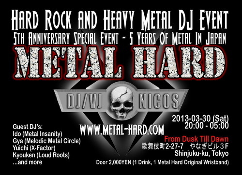In March it will be Metal Hard's 5th anniversary. It will be 5 years since I started DJing in Japan. I want to thank everybody for your support for the last 5 years and more to go. Metal is forever. In this event I will give to all who join an original Metal Hard wristband as a small thank you for your support. Join and have good Metal Hard Night.