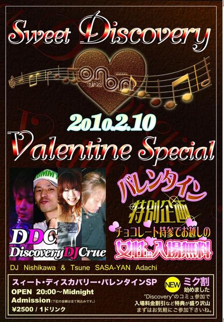 大阪NO.1オールジャンルイベント茶屋町danceteria SAZ●*Eの伝説のイベント「Discovery」がパワーアップして梅田On and Onで復活!! Valentine企画!チョコレート持参でお越しの女性の方は入場無料!!