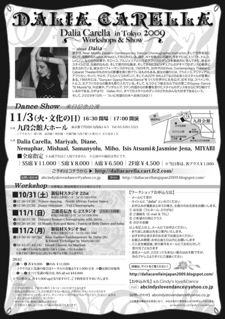すばらしいダンサーの方々とともに、Daliaの来日、そしてベリーダンスをみなさまと一緒に"SHARE"できるように願っております。。。