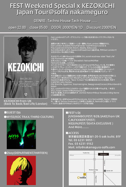開催終了KEZOKICHI from LONDON,MYSS,2BOY出演!FEST Weekend Special x KEZOKICHI Japan Tour@solfa nakameguro