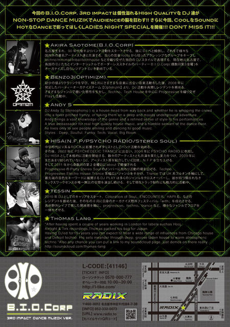 B.I.O. Corp. is a party production crew which premiered by making the live electronic party at RADIX back on September 11th. B.I.O. Corp. has no central location or power structure making it extremely difficult to pinpoint or stop a B.I.O. Corp. event. Once a B.I.O. Corp. event springs up, the only way to stop it is to wait until first train in the morning when the crowded club naturally dissipates. By that time pent up stresses have been released back into the ether only to accumulate into another B.I.O. Corp. event– A vicious circle. Keep an eye out. More news to come.