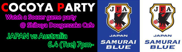 This is a hot event!!! If you love football, better get coming to the party!! Those who love football will gather that day and watch the final qualifier of FIFA world cup!!! On that day there's the match between Japan and Australia. The venue has 5 big TVs and a projector. You can more enjoy the game there than alone at home!! We're waiting for your reservation!!!