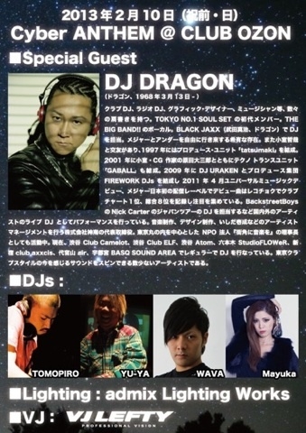 開催終了Cyber Anthem @OZON◆GUEST DJ DRAGON◆さぁ、あの感動を今ここに…【2月10日祝前日曜日】