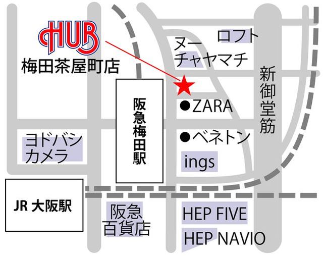 HUB British Pub Umeda Address: Chiroru Chayamachi Building 2F, Chayamachi 3-4, Kita-ku, Osaka City, Osaka 530-0013