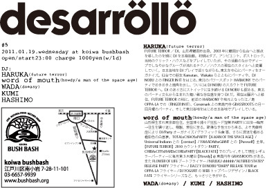 開催終了2011/01/19(wed/allnigth) DESARROLLO #5@小岩BushBash