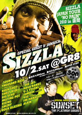 開催終了10/2(SAT)SIZZLA JAPAN TOUR 【NO PAIN】2010 in 盛岡