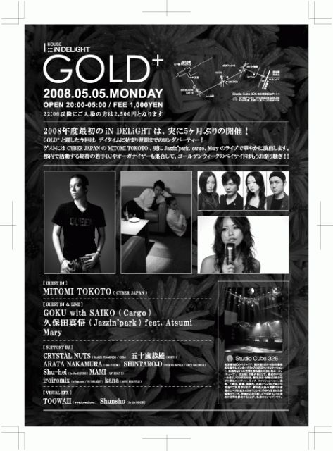 ゲストにはCYBER JAPANのMITOMI TOKOTO、更にGOKU with SAIKO (cargo)、久保田真悟 (Jazzin'park) feat. Atsumi、Maryのライブで華やかに演出します。