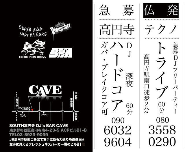 2010/8/27 (FRI) @ 高円寺 DJ's BAR CAVE 22:00 OPEN 入場無料 with 1ドリンク 再入場可