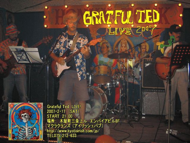 をまるめこみ幼少の頃からGrateful Deadのライブを何度も体験したというアメリカ人(自称)Joel率いる京都のバンドGRATEFUL TEDが結成したのは去年の夏!7月に行われたサイケデリックイベントFlower Power Festival(http://mixi.jp/view_community.pl?id=1027142)に出演して以来何度かライブで皆を沸かせ、今回初のソロライブです!