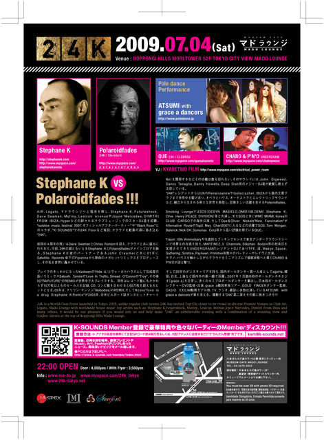 今回、24Kの顔ともいえるStephane KとPolaroidfadesがメインフロアを飾る。