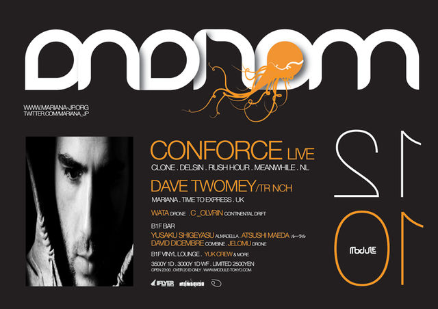 12月10日ModuleでののMariana Dub Sessionsのスペシャルゲストには、メロディックな音を中心にプレイするCONFORCEが登場、ライブプレイを披露します。Mariana @ Warehouse 702イベントのダブ/テクノ姉妹イベントにあたるMDS過去のゲストには、オランダのDelta FunktionenとドイツのKassem Mosseが登場。サポートにはMarianaを立ち上げたDAVE TWOMEYがラストセットをプレイ、他にもDroneのWATAなどがプレイ。