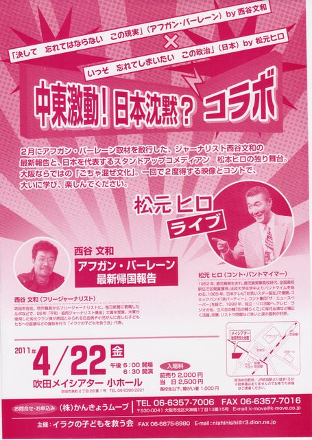 恒例の「西谷文和さんの中東最新報告会&松元ヒロライブ」