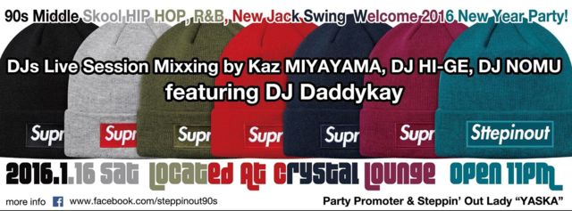 その後、場所をClub B、QUESTへ移し更に規模を拡大する一方で、都内で開催される旧譜イベントへのゲスト参加など精力的にDJ活動をすすめ、QUESTでの“Break of down”を更に昇華させたパーティー “JOY" 企画運営、渋谷の大箱axxccisの90's party『Steppin' out』へのレギュラー出演など、現在進行形で90’sファンを魅了し続けている。