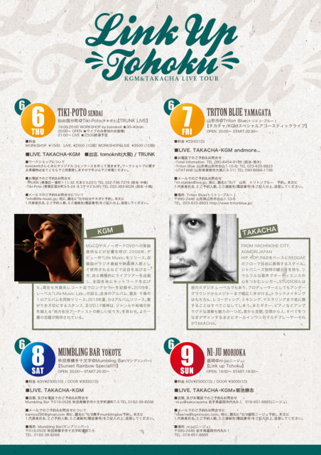HIP HOP,R&BをベースにREGGAEのフローで自由に表現するスタイル。 ジャパニーズ独特の暖かさを持ち、ソウルフルな歌声でオーディエンスの心をつかむシンガー。 STUDIO8とは彼のスタジオ,レーベルでもあり、プロデューサーとしてもアンダーグラウンドからメジャーまで幅広く手がける。トラックメイキングはもちろん、レコーディング、ミキシング、マスタリングまで音に関することはすべてこなしてしまう。 またギター、ピアノなどアンプラグドな演奏も魅力の一つだ。音から空間、空間から人、すべてをつなぎデザインするまさにオールインワンのマルチプレーヤーそれがTAKACHA。