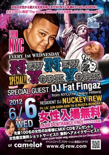 開催終了6/6[水]☆“渋谷CAMELOT”■毎回大盛況PARTY"NEW YORK NEW YORK☆ 本場USのTOP DJ集団"The Heavy Hitters"からDJ Fat Fingaz特別出演★女性入場無料&特典満載!!簡単一言ゲスト入場はコチラから★