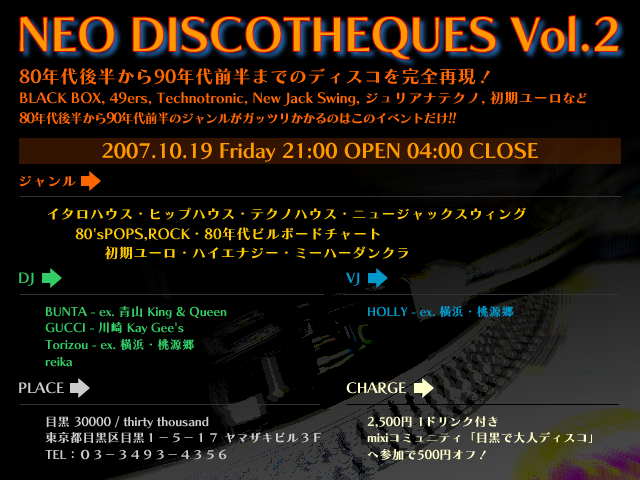 • 2007年10月19日 (金) 21:00 OPEN 〜 04:00 CLOSE