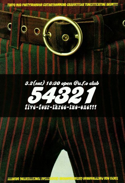 ■about 5-4-3-2-1 奇数月第一土曜日に高円寺U.F.O CLUBで開催している60'sイベント!熱狂のライブステージ、定番からレアなレコードを大音量でプレイするDJタイム、ハコは東京一のサイケデリックスペース高円寺U.F.O CLUB。退屈な日常はない刺激・興奮を体感すべし。60年代の音楽やファッショなどに少しでも興味ある人は必ず楽しめます。Let's dance, boys and girls!!!