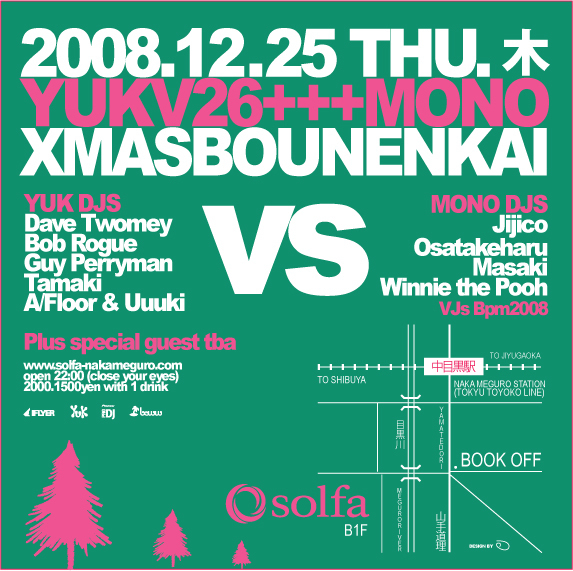LOUNGE HOUSE/TECHNO/ALLMIX 22:00-00:00 A/FLOOR & UUUKI (YUK) 00:00-01:00 GUY PERRYMAN 01:00-02:00 WINNIE THE POOH (MONO) 02:00-03:00 TAMAKI (YUK) 03:00-04:00 OSA TAKEHARU (MONO)