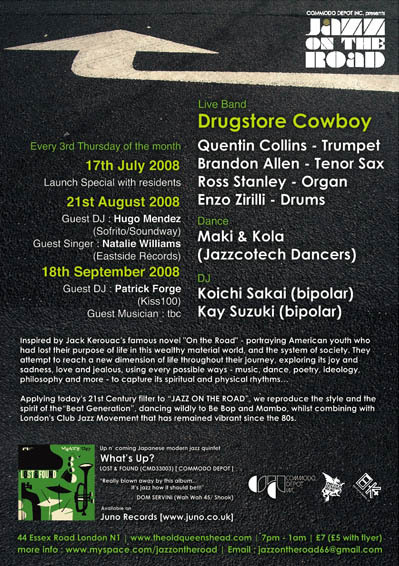 ビート・ジェネレーションと呼ばれたこの若者達が当時最盛期だったHard BopやMamboで激しく踊るというスタイルと思想、そしてロンドンで80年代から続くクラブジャズムーブメントを、このJAZZ ON THE ROADで再現します。