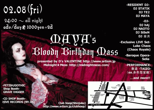 Thank you so much to everyone who came to MAYA's Bloody Birthday Mass on Feb.8th!!Thank you for so many present and food and wine!!MAYA would like to thank all the artist who performed and the staff who supported her.