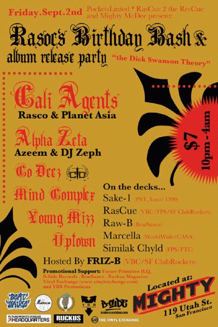 First, catch our poster boy, deedot with the Cali's finest...the Cali Agents and more, on friday, Sept 2nd !!!