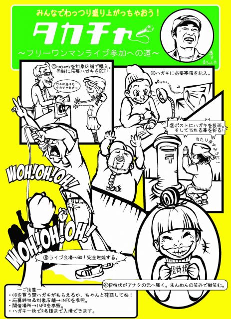 こんなかんじになってます!タカチャのワンマンライブはかなりコユイ内容になってるらしく、未発表曲や他のアーティストのフューチャーもあるらしい...。これは行かなきゃでしょ。締め切りが迫ってるらしいので、まだCD買ってないって人は急いでお店へ GO GO! 特に地元八戸はなんと八戸体育館!あそこ余裕で何千人って入っちゃうとこだから。でも、地元だから相当の人であふれかえるに間違いないよ!東北の人はマジで必見だね。 ということでみんな今回のタカチャの挑戦的とも言える今回のフリーワンマンツアー。是非、友達家族誘って遊びにいこう!!