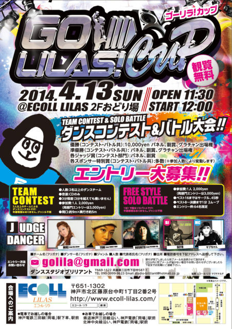 4月13日に年齢制限無しのチームコンテストとフリースタイルソロバトルを野外のショッピングモールでやります!