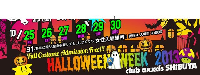 開催終了今夜10/26(土)渋谷axxcis最安入場無料簡単入場「ジュンペイのゲストでゴールデン」と言えば何人でも女性無料、男性千円で入場可能☆DJ KEN-SUKE,CHIN-NEN3フロア1000人規模☆WEEKEND TOKYOハロウィン@axxcis