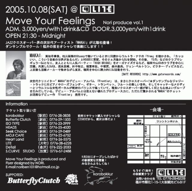 ☆チケット取扱店☆ korobokkur 0776-28-3838 Butterfly Clutch 0776-29-1505 ISO TYPE 0776-23-3999 THE HEADS STORE 0776-25-4520 Seek Choice 0776-29-0489 MOJI CAFE 0776-22-6752 Heart Land 0776-26-5575 Detail 076-222-2033 S.CURVE STUDIO 0776-57-2488 LITE 0776-28-6228