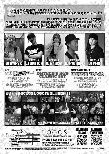 開催終了3/20 "BLUEISH"EVERY TUESDAY NIGHT!!@CLUB LOGOS